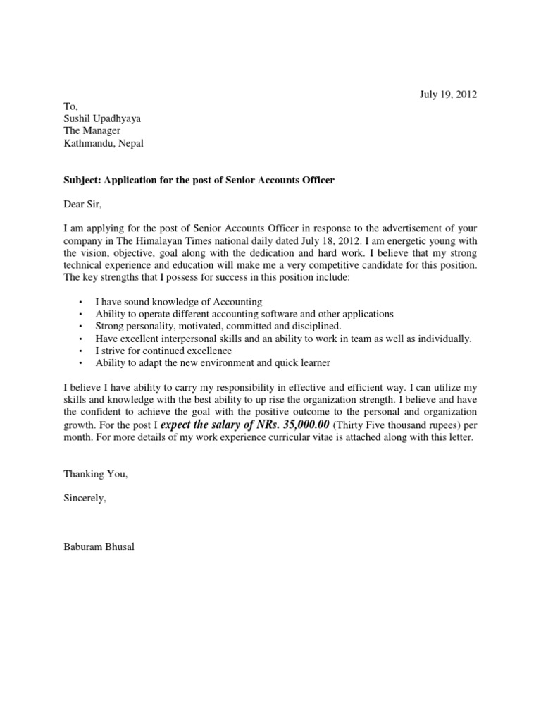 Job Application Letter Sample Nepal - This is the perfect way to express how your specific skills are relevant to the open position.